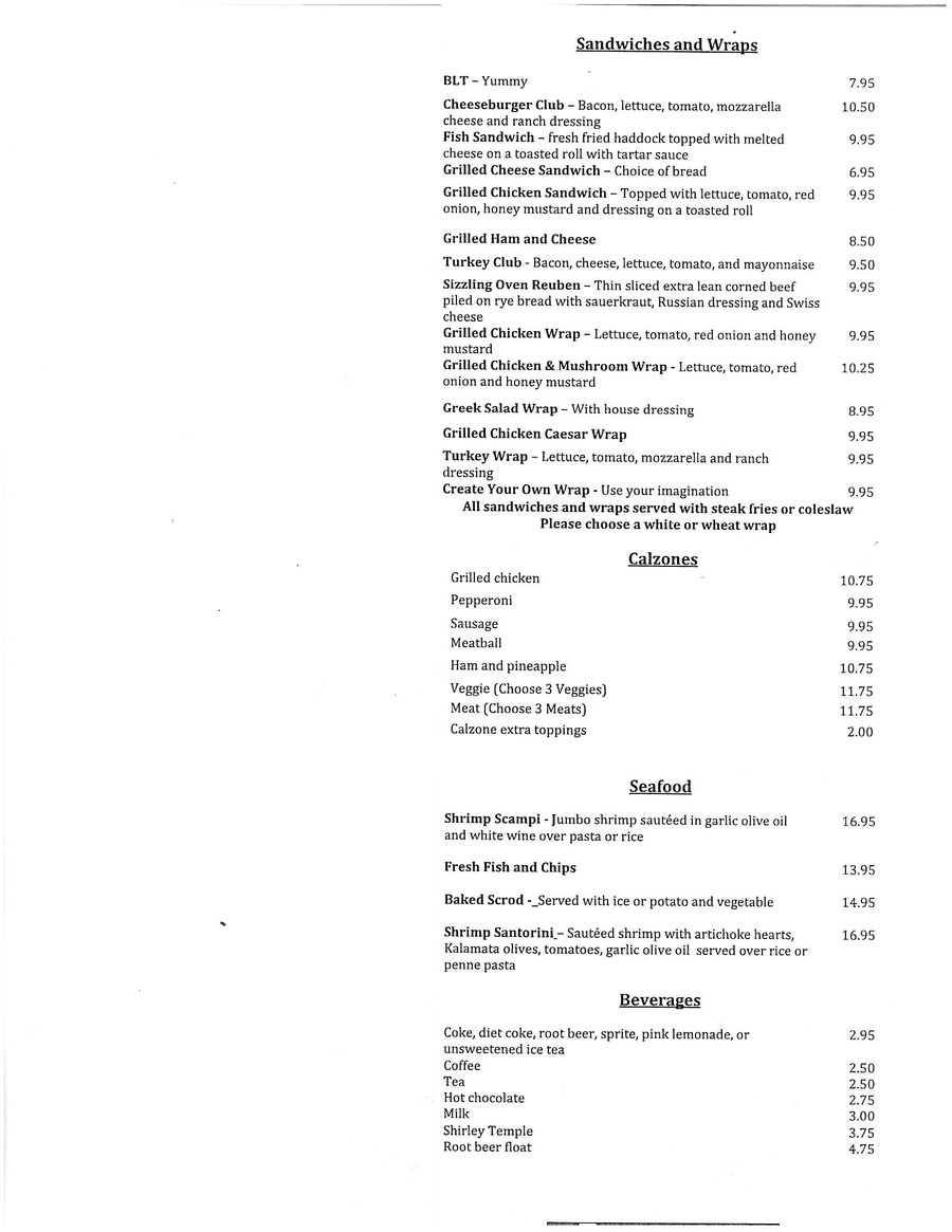 We offer delicious home-cooked lunches and dinners in a warm, family-friendly environment. In addition to our famous pizzas, we specialize in Greek, American and Italian dishes.